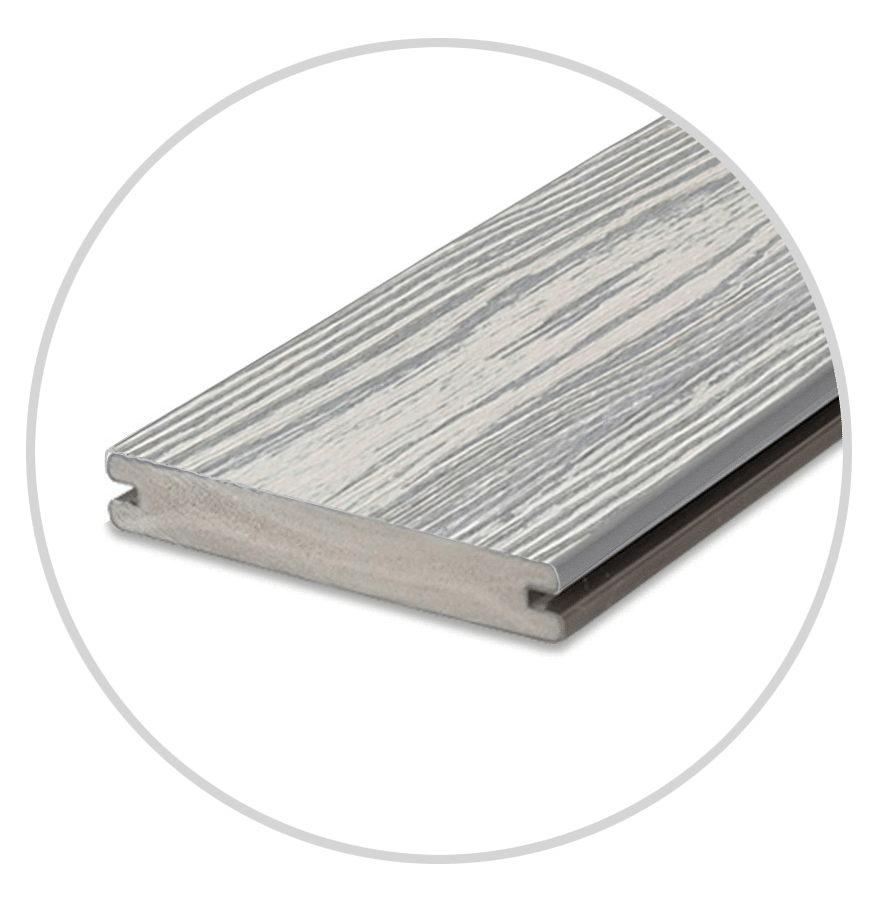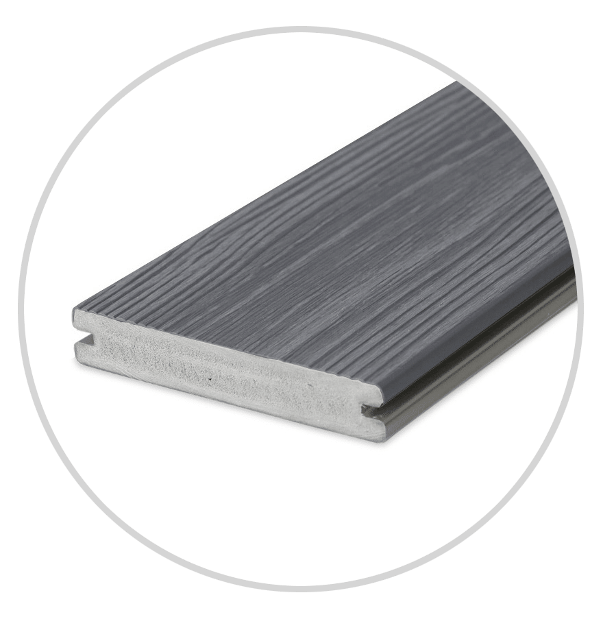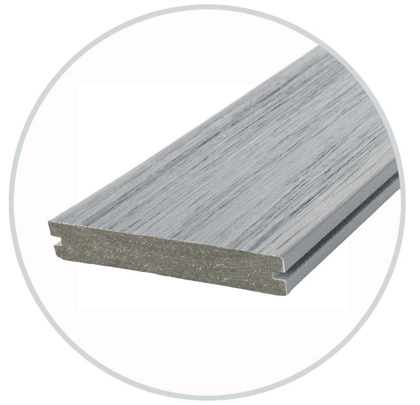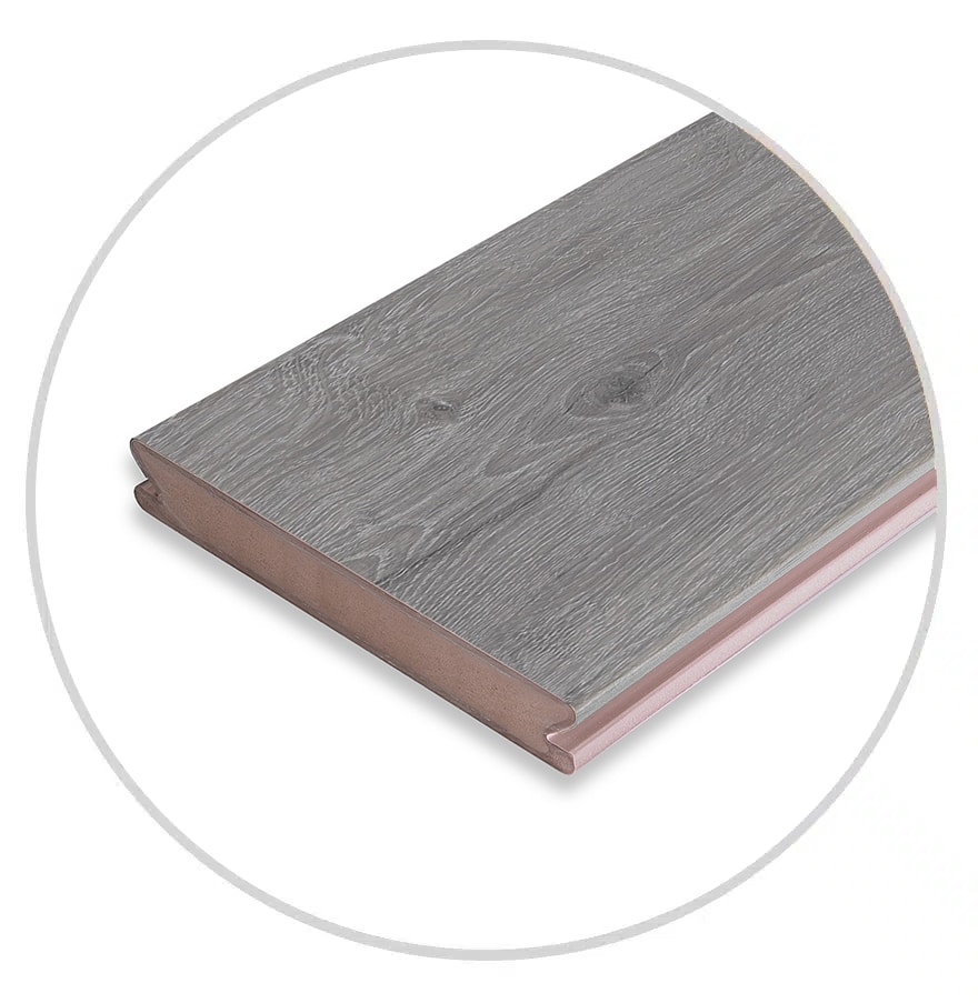 Enjoy the look of time-weathered timber in eco-friendly composite thanks to advanced photorealistic print technology. The Weathered Ash colour option brings a sense of history and an understated elegance to your outdoor space.
