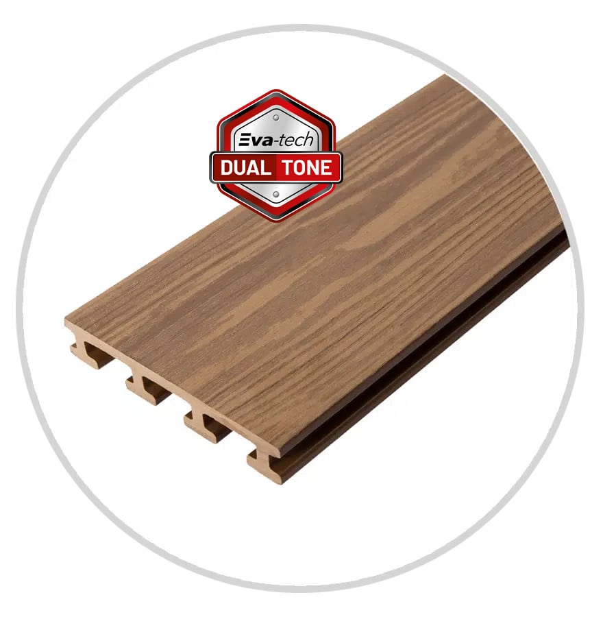 The new Eva-tech dual tone color range adds an extra level of color technology to each of the classic Eva-tech colors to provide an even more natural looking composite in an artfully designed surface finish that embodies the look of real wood. Enjoy Eva-tech bamboo composite in this advanced dual tone aesthetic.