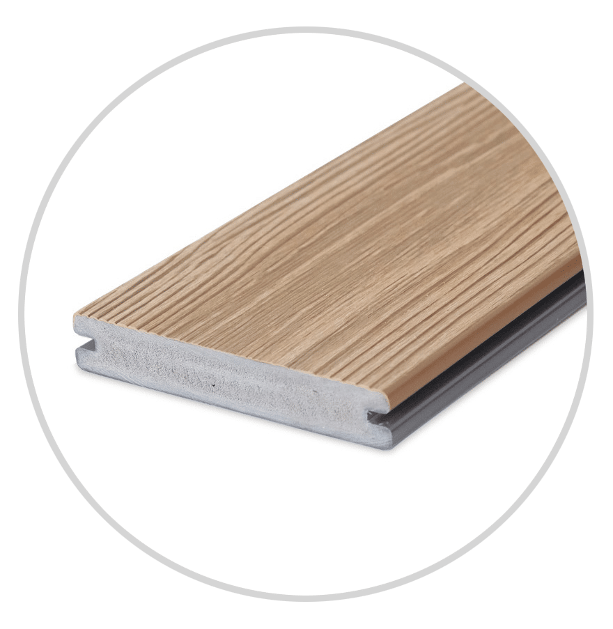 The Natural IPE colour option brings the ever-popular beauty of teak to your outdoor space in a more eco-friendly and hassle-free composite. Advanced photorealistic print technology enhances the details of this understated yet timeless hue, giving it all the well-loved details and distinctions of teak timber.