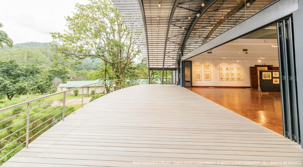 Perhaps the most dramatic showcase for the Infinity range of composite decking can be found at the imposing Aberfoyle Lodge in the eastern highland tea plantations of Zimbabwe. The imposing Arches@Aberfoyle was designed by a leading Zimbabwean architect and incorporates a suspension bridge design that also includes a viewing deck, art gallery, and wedding venue.