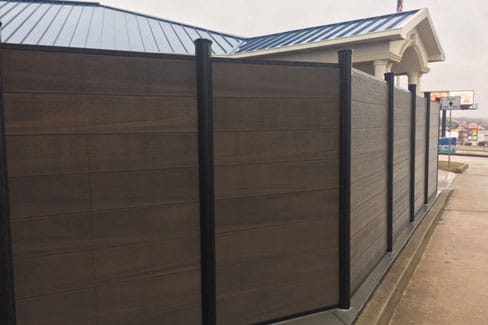 Oasis composite fencing is made from bamboo fibers and recycled plastic for greater insect, moisture, fade, and decay resistance.