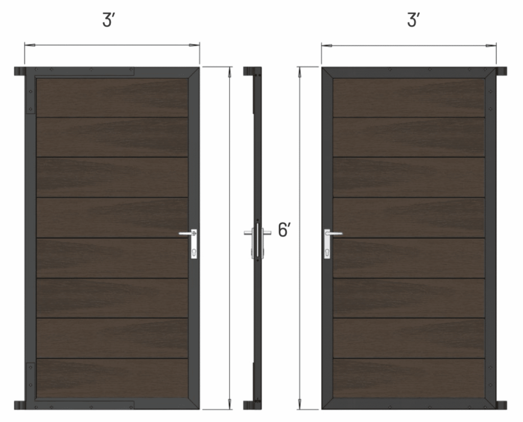 Sizes: 6’ high gate with 3’ panel width Taille hauteur 91,44 cm composes de 3 planches